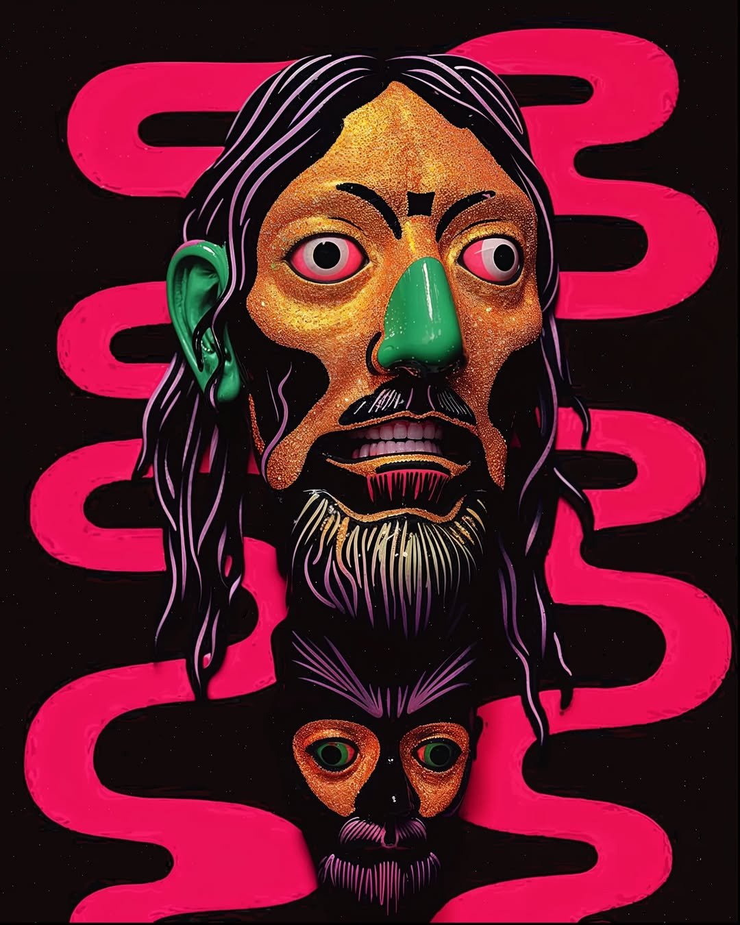 Color is essential to my work—it’s one of my greatest creative obsessions. I’m fascinated by bold color combinations and vibrant palettes, which drive much of my decision-making. In my art, color is not just a visual element but an emotional trigger and narrative tool. My imagination and artistic practice are influenced by visionary artists like Keith Haring, Yayoi Kusama, Basquiat, Andy Warhol, Katsushika Hokusai, and Tadanori Yokoo.