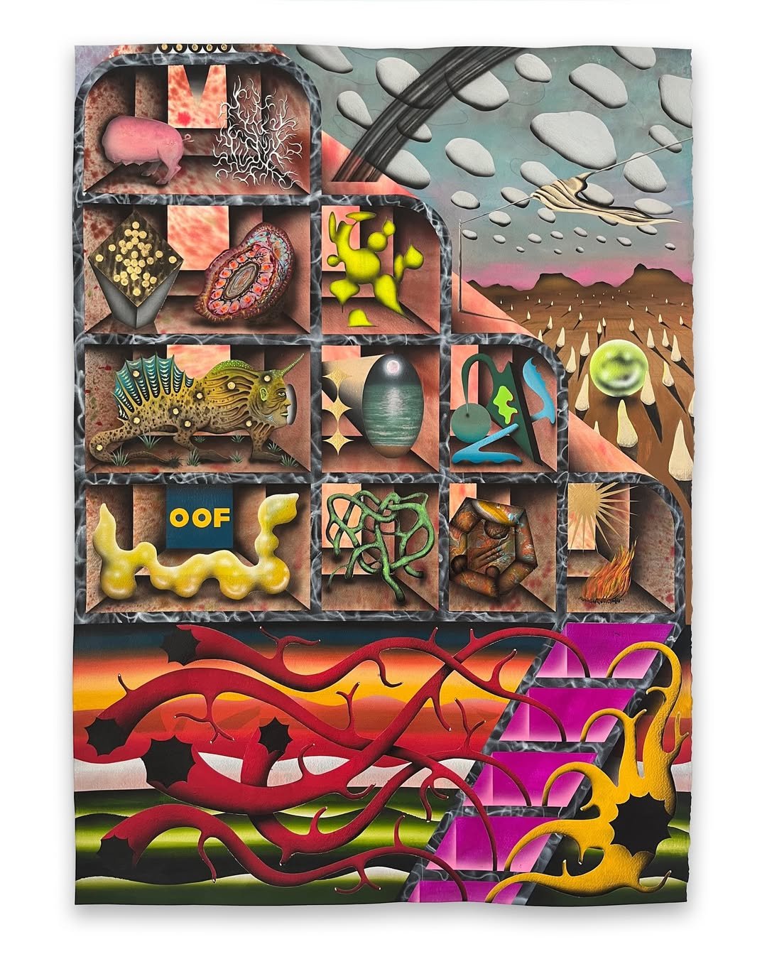 Rafael Plaisant, “Repositório XXVIII (OOF),” 2024, gouache and acrylic on 300g cotton paper, 31.5” x 22.5”