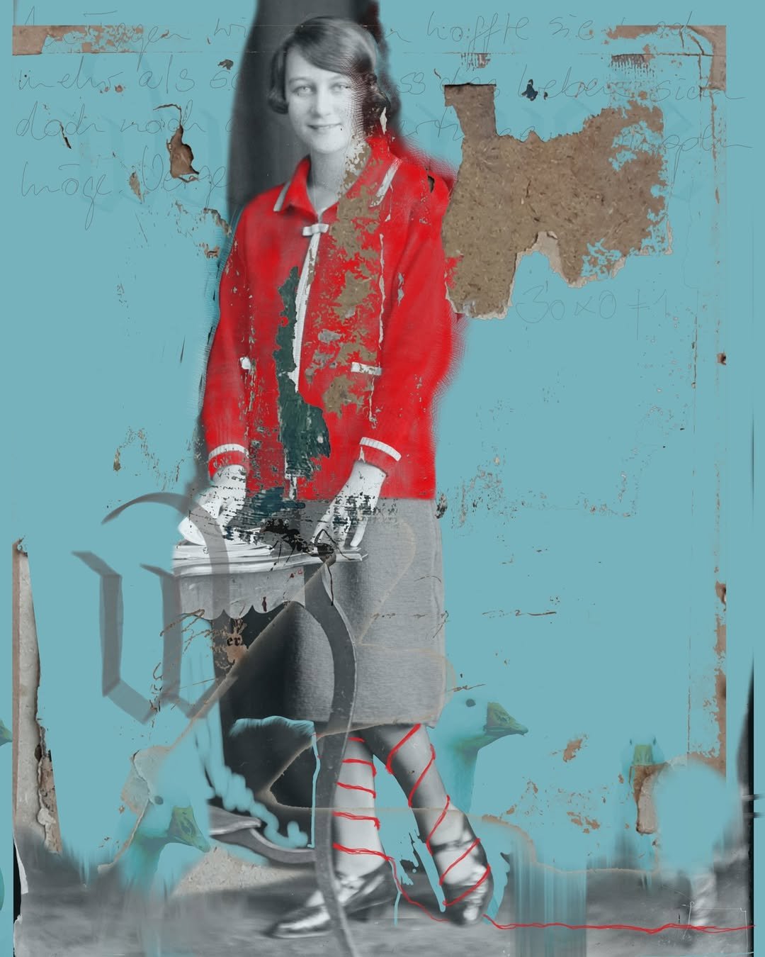 More work that caught our eye as @andrealewicki & I curated Complex Pictures, the show of digital collage art coming next month in Seattle. This is âRentenbescheidâ by Eva Maria Reinhardt.