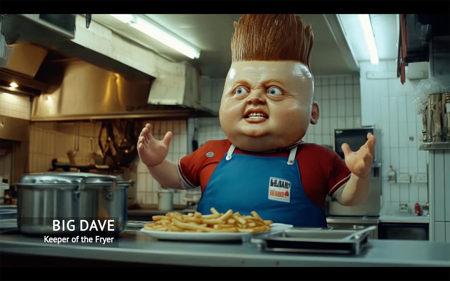 In the first episode, hola.rit.ai and 50labs.ai use the surreal fluidity of generative AI video animation to tell the story of a community’s fight against the closure of their local chipper, Big Dave’s Codfather, tapping into a core element of British culture.
