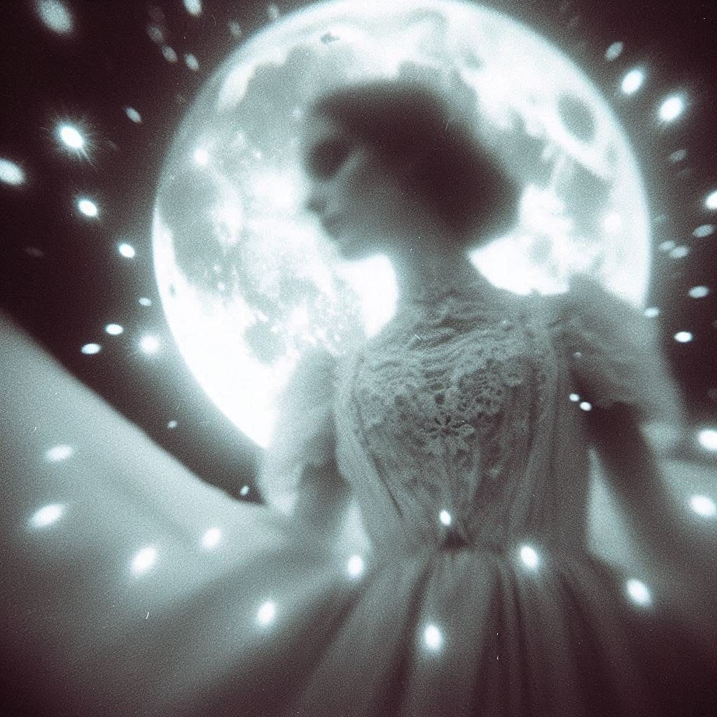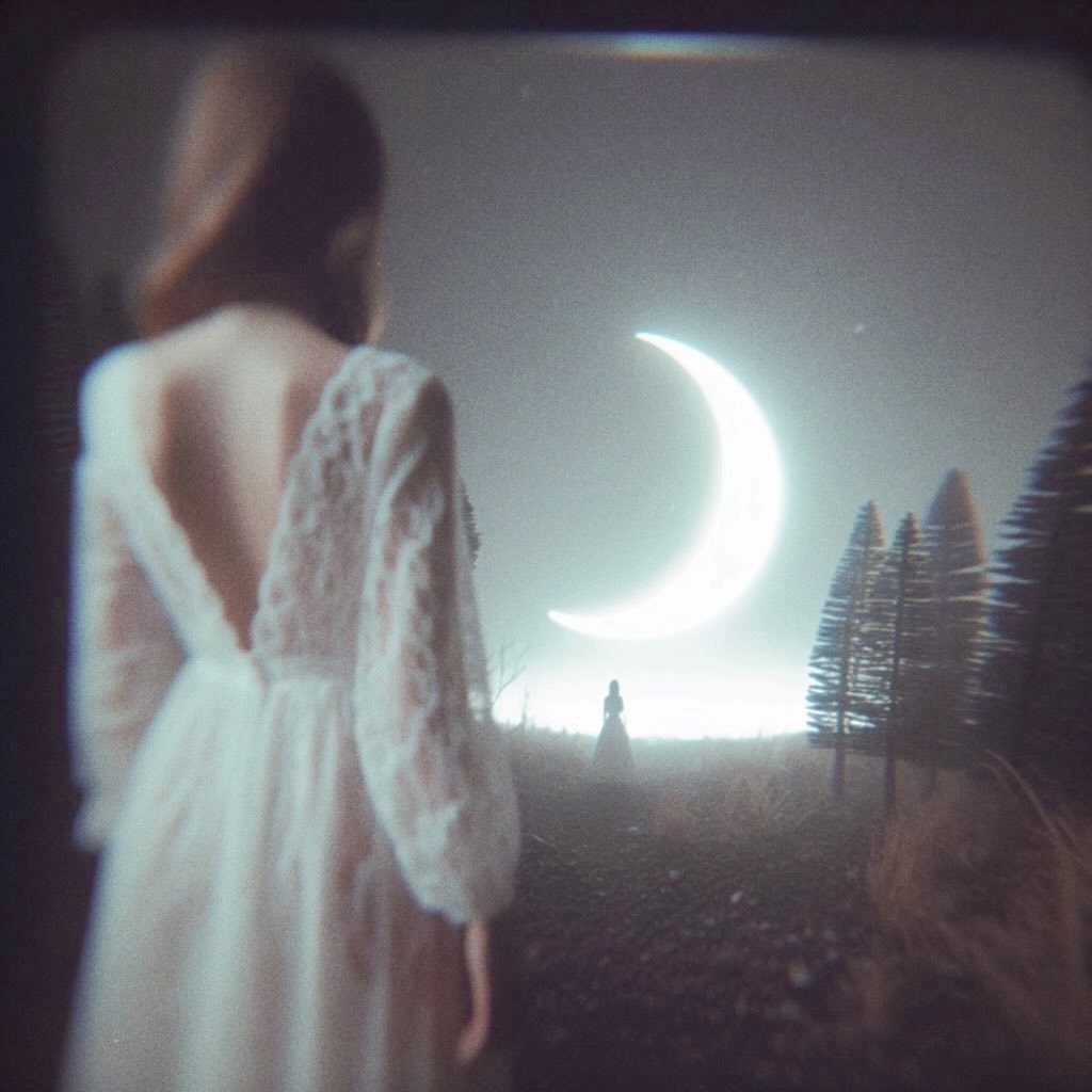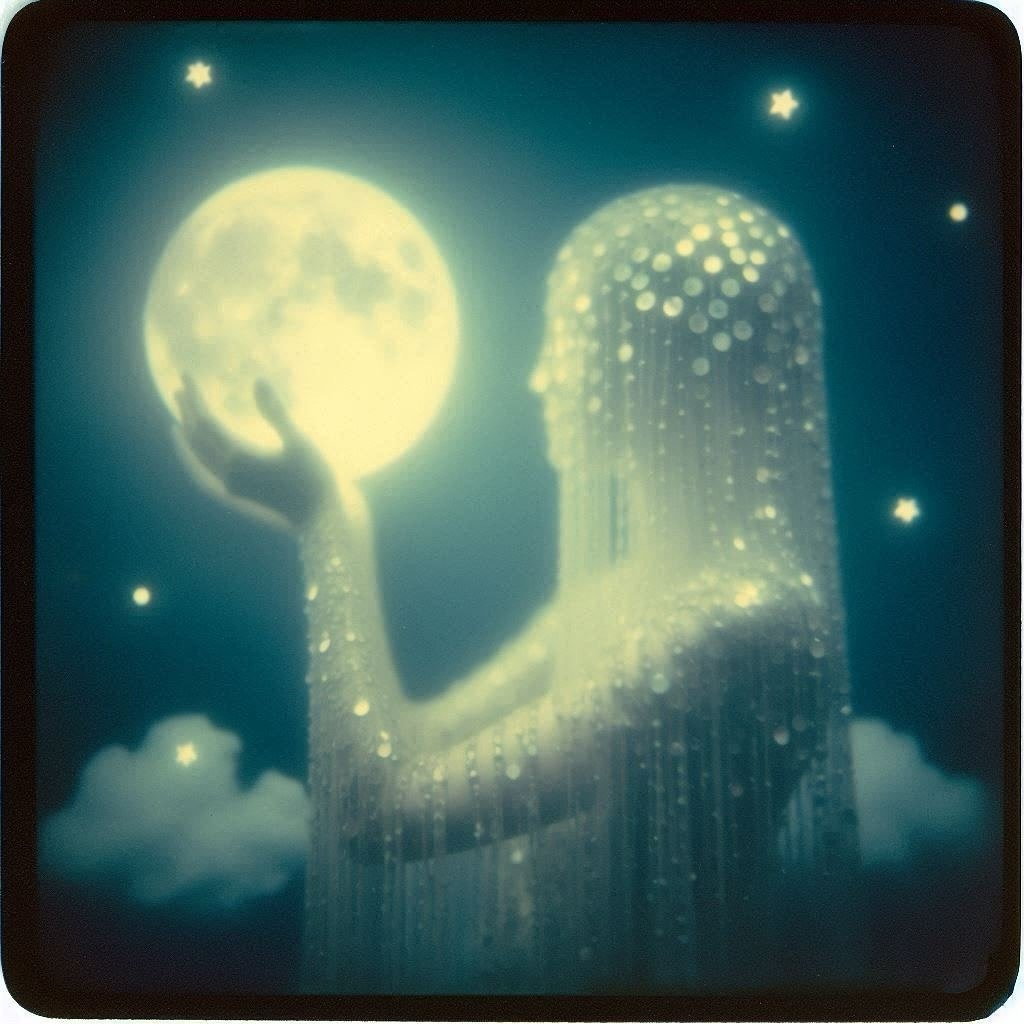 @digitaldollhouse_ai leans into intimacy. Her figures drift through forests and voids, cradling moons or cloaked in stars. Each frame feels quiet, theatrical, and surreal—somewhere between Icarus and a vintage editorial shoot. The sky here isn’t vast. It’s soft, symbolic, and close to the skin.
