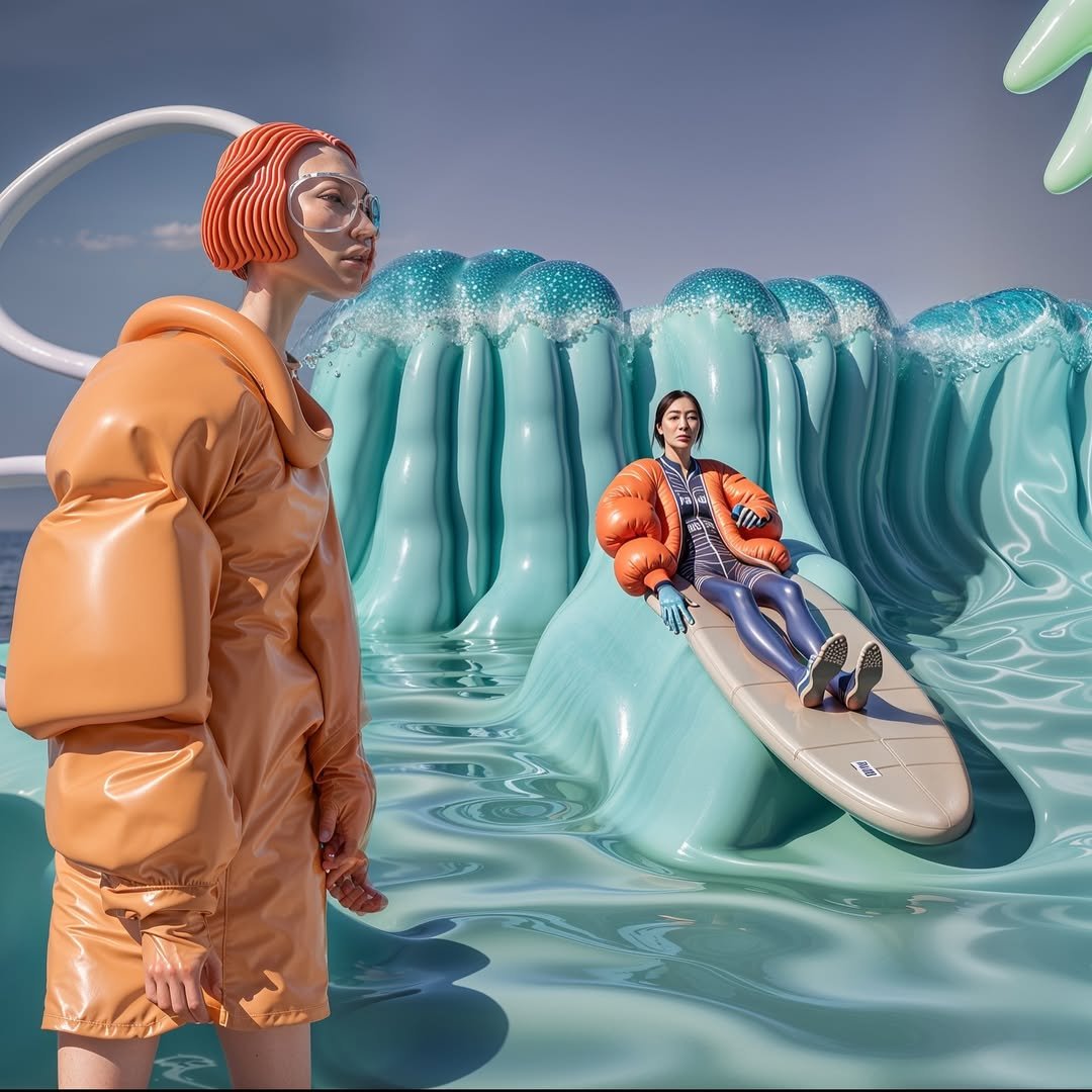 Floam World is the creation of Leilanni Todd, a creative director and digital artist whose work spans experimental film, fashion, art, and synthetic world-building. Launched in 2022, Floam World is a floating, ever-expanding universe built using generative AI, humor, and absurdity; a place populated by glamorous, synth-sentient beings and surreal marine life.