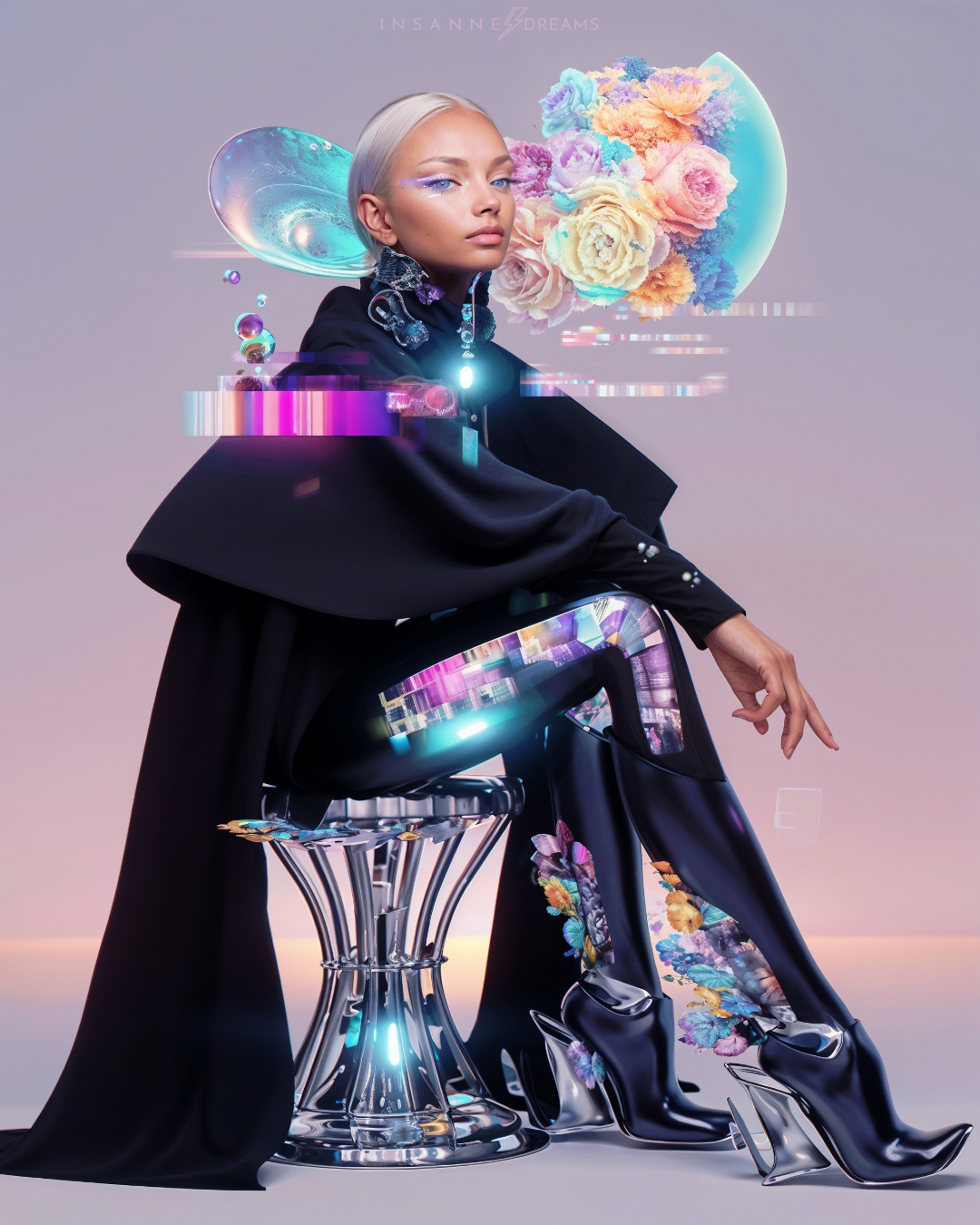 My artistic style, which I’ve cultivated through a collaborative dance with AI, can be best described as Avant-Garde Surrealism. It centers around the human figure as a focal point, often placed within surreal yet serene scenarios. My aim is to capture a sense of quiet progression, a visual journey akin to a dream subtly materializing into reality – a concept reflected in my artist name, Insanne Dreams.