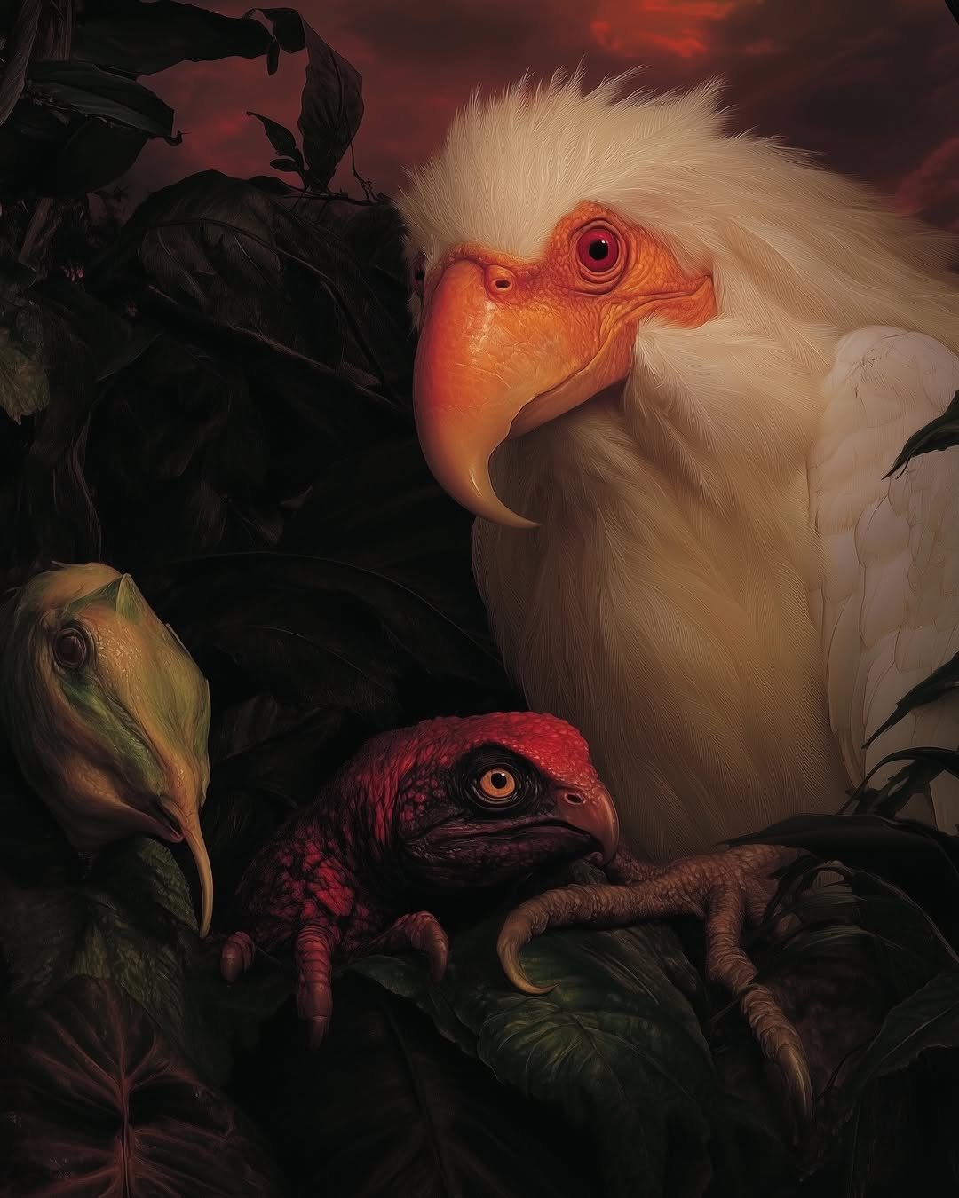 Much like the medieval bestiaries that featured real and mythical creatures, Kunstkammerai has created a modern bestiary filled with bizarre, imaginative animals. Rich in detail and vibrant colors, these creations offer a fresh take on the natural world, placing the familiar alongside the fantastical.