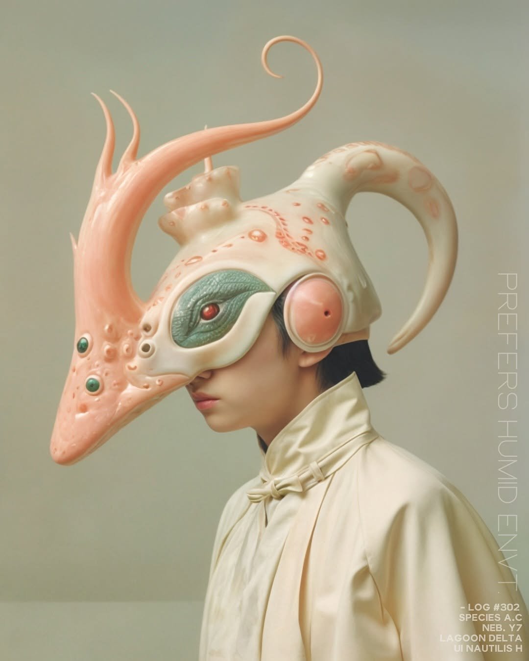@dullia.ai is drawn to surrealistic and biomorphic movements, with strong sci-fi and futuristic influences, and a touch of haute couture. She leans toward soft, pastel tones to reflect the gentleness she tries to carry daily. She works like a xenologue, stepping beyond what is familiar to conjure new life forms and expressions. She is drawn to metamorphosis, merging organic shapes with futuristic influences and nurturing a deep urge to see beyond everyday limits.