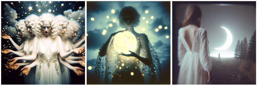 I’ve chosen six different artists who often depict the sky in their AI art—each using generative tools to express something timeless, emotional, and celestial in distinctly personal ways.