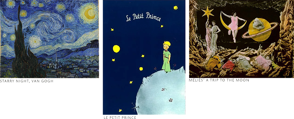 Artists have always looked to the sky for meaning. From Van Gogh’s Starry Night to Méliès’ A Trip to the Moon, and the star-swept pages of Le Petit Prince, the heavens have long been a canvas for memory, mystery, and metaphor.