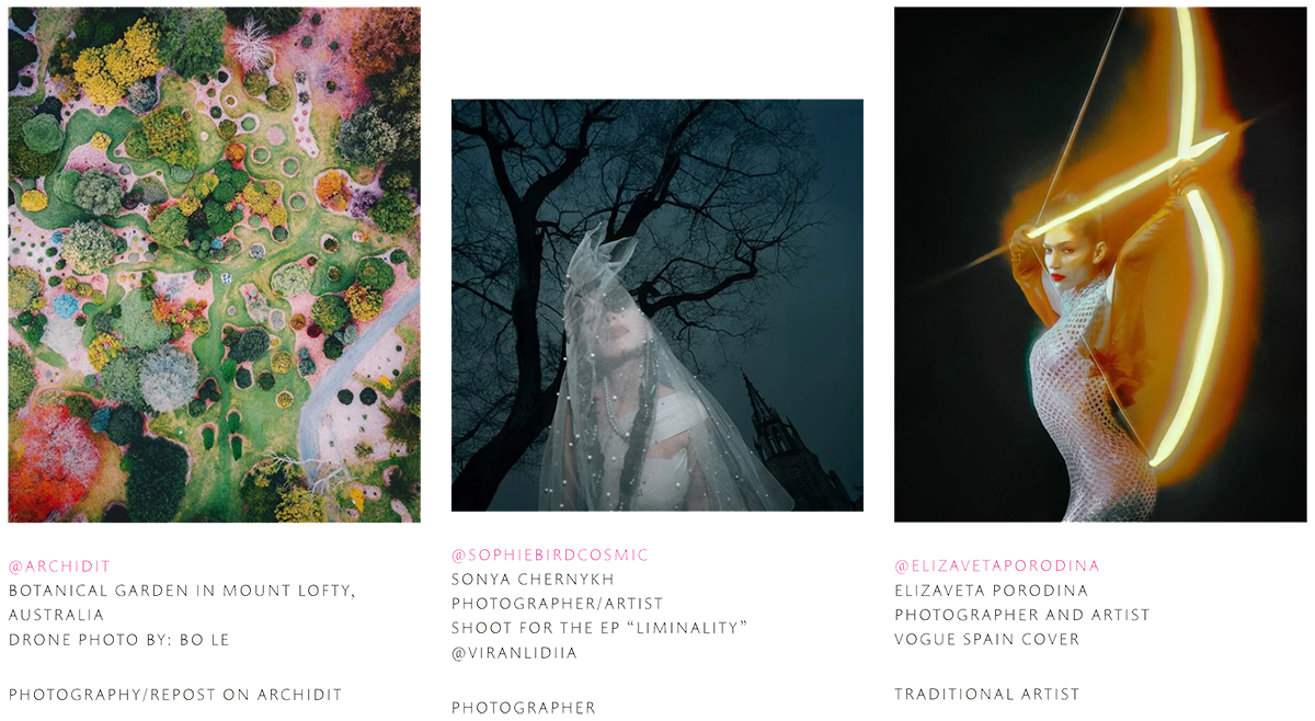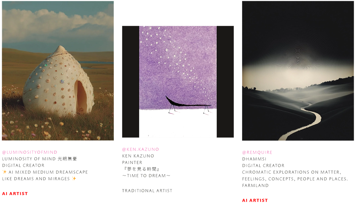 I’m interested in spaces on Instagram where curation matters. Images fly by at great speed, liked, admired, but fleeting nonetheless. Curating some of the art on IG gives us a chance to pause, to look again. Manuel Guzmán at @b_white_canvas creates a space to explore a world of endless creativity. Discover thousands of artists in his curated highlights galleries, curated visual art paired with Manuel’s original music, presented in fast-moving, immersive slideshows. Each gallery is numbered, and as of today, we are at G-25. Originally from Chile and now based in Dubai, Manuel Guzmán pairs all forms of art from traditional to AI. I’ve been featured in his galleries a few times as both @perfectagala and @elizadesignai, and I really enjoy exploring all the incredible art he curates.