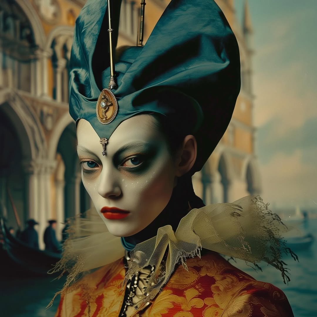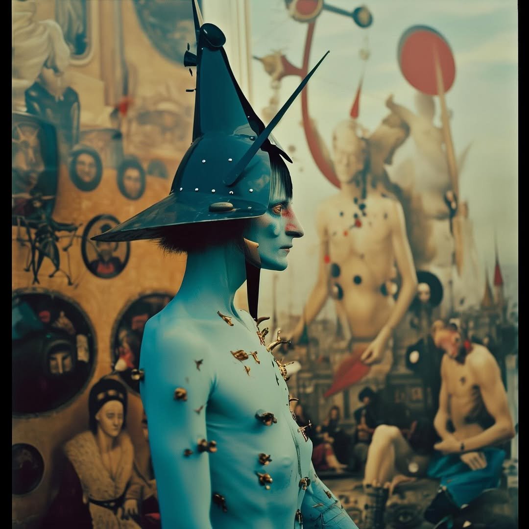 Finally, we examine Boschism, a term coined by viniciusterranova to describe his work, which blends documentary-style imagery with classical and surrealist art. Inspired by Terranova’s visit to Venice and Hieronymus Bosch’s The Garden of Earthly Delights at the Museo del Prado in Madrid, the series merges historical and futuristic elements. It explores the contradictions of an empire’s grandeur and decay, reflecting the complexity of human nature in a visually striking way. The top image depicts AI as a machine-like artist.