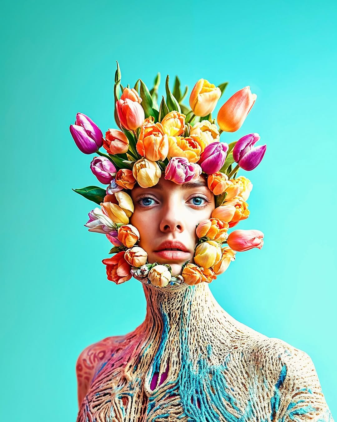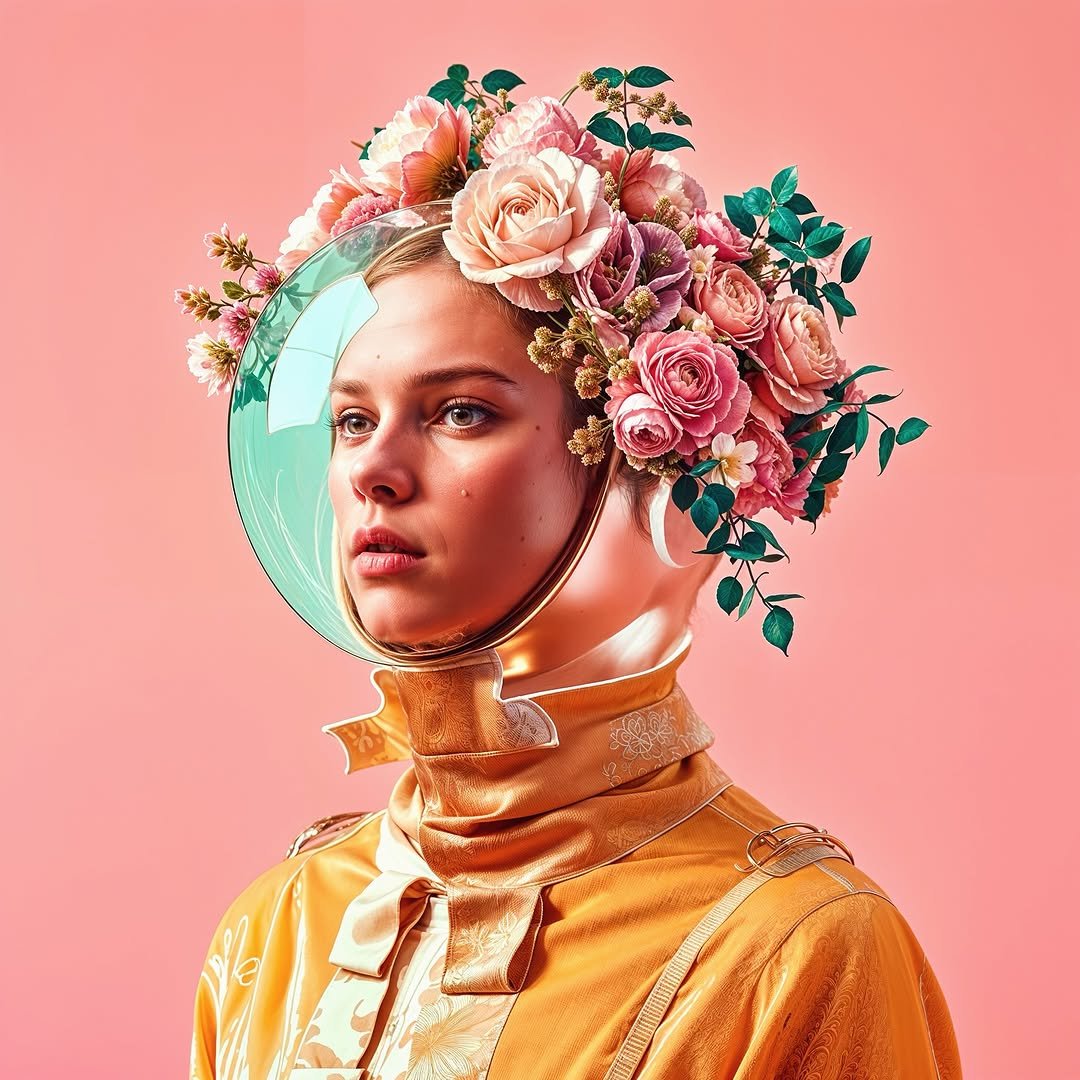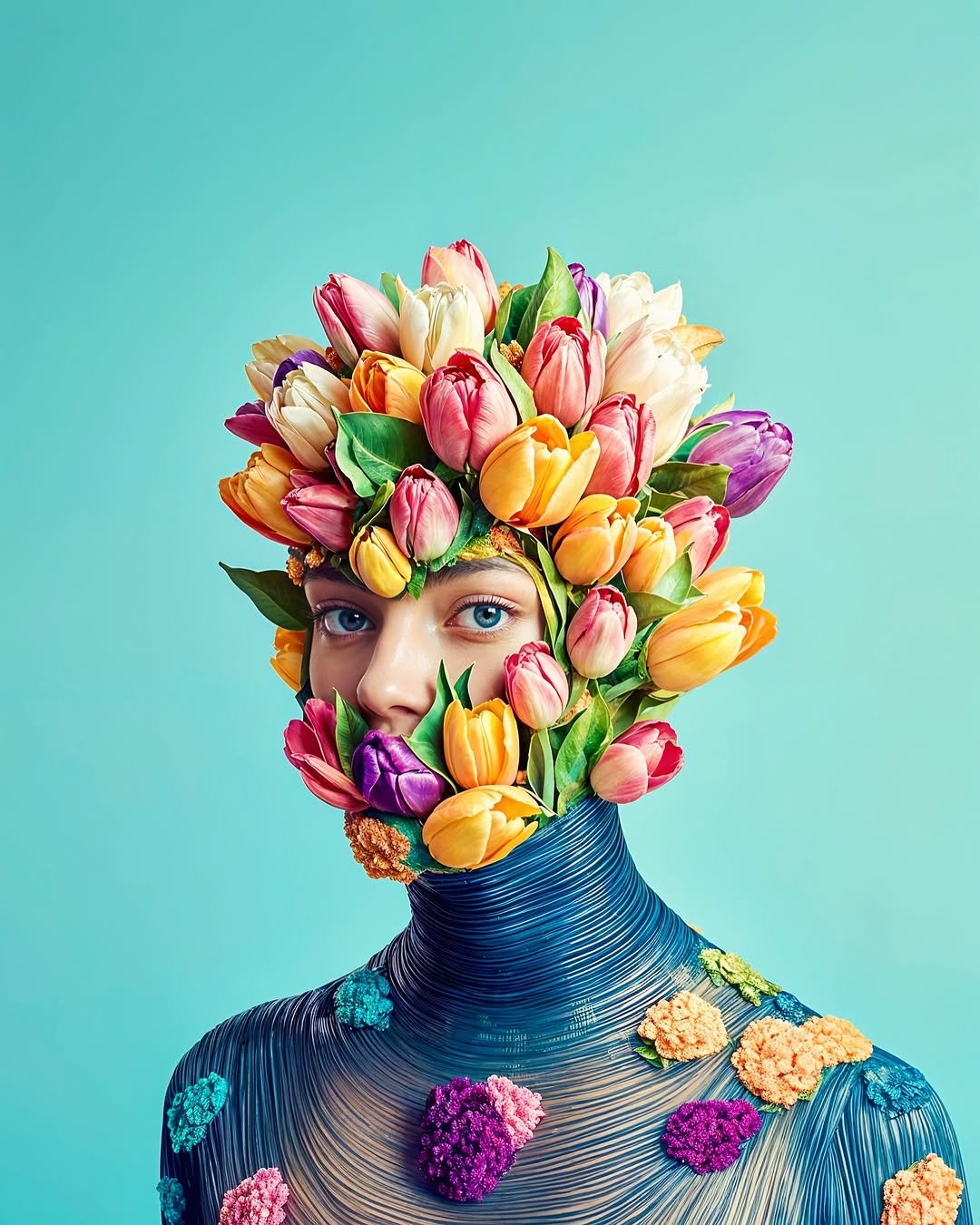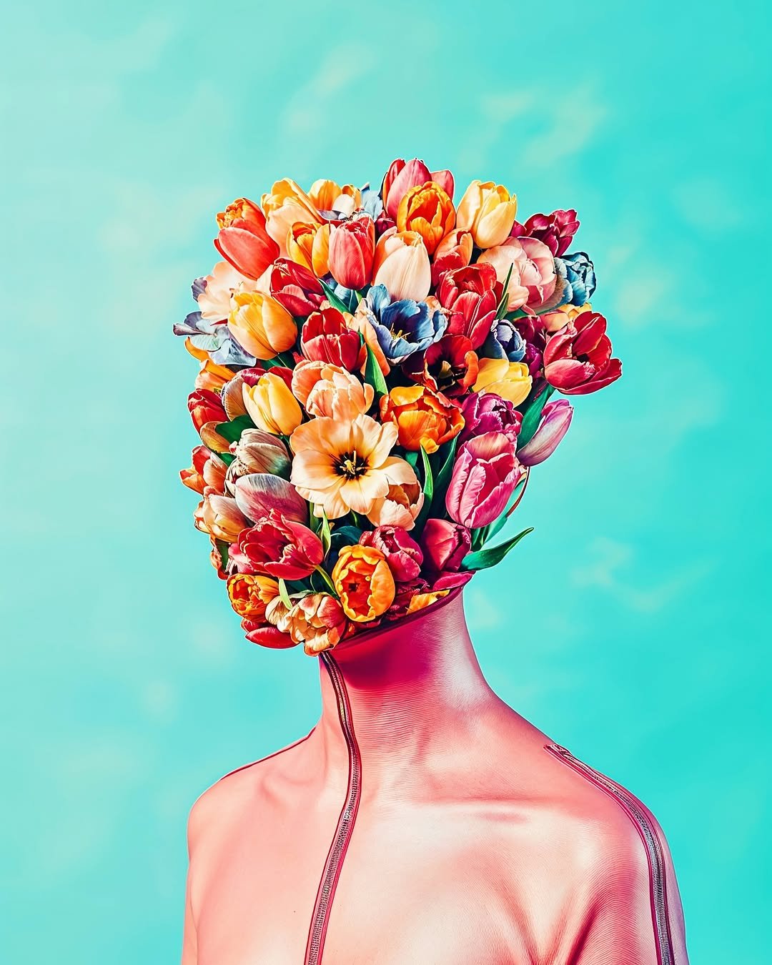 pixi_nook brings a vibrant, colorful, and clean graphic style to her art, many infused with floral designs. Her work combines humor, vibrant hues, and playful animations, offering a fresh and uplifting take on flowers. Joyful is the word that comes to my mind when experiencing her art, as it radiates positivity and creativity. One standout piece features a crustacean bursting into a bed of tulips, showcasing her unique ability to blend whimsy with floral beauty in an imaginative and delightful way.