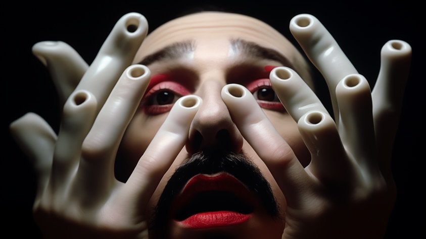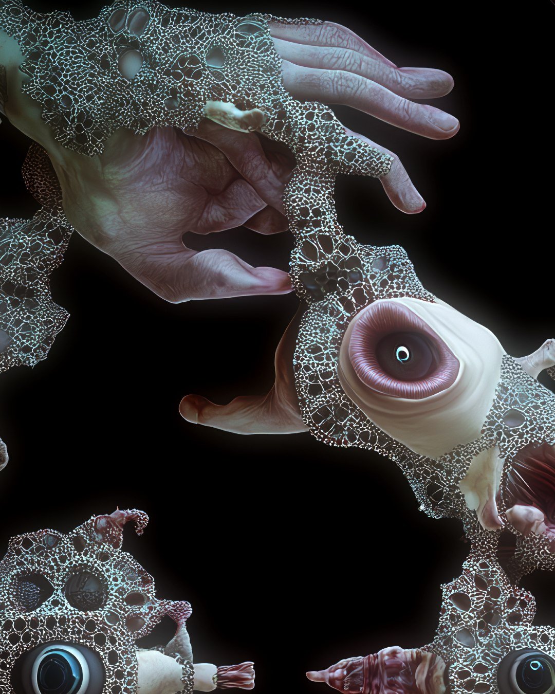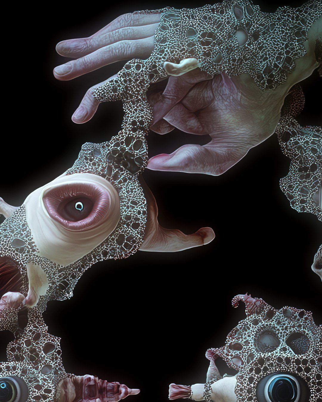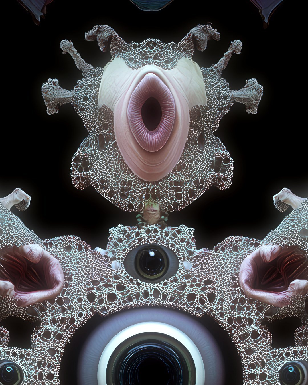 Her AI-driven work twists almost-recognizable body parts into strange, beautiful forms. Fingers become dancers, faces spin in kaleidoscopic loops, and mouths fold inside out. The sound is essential and excellent. Turn it up. This is art that swan-dives into the weirdness of generative AI, soaking in its quirks and pulsing with surreal energy in a Dadaist homage.