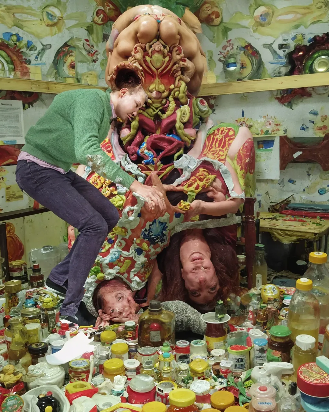 @uglyy_fruuit has created their own AI art movement aptly named traumatic post-realism, a style that crowds, fractures and distorts images to reveal digital scars. A self-descibed “pixel masher”, using gen AI to reassemble visuals into funny, glitchy, provocative, and fragmented forms and cursed images.